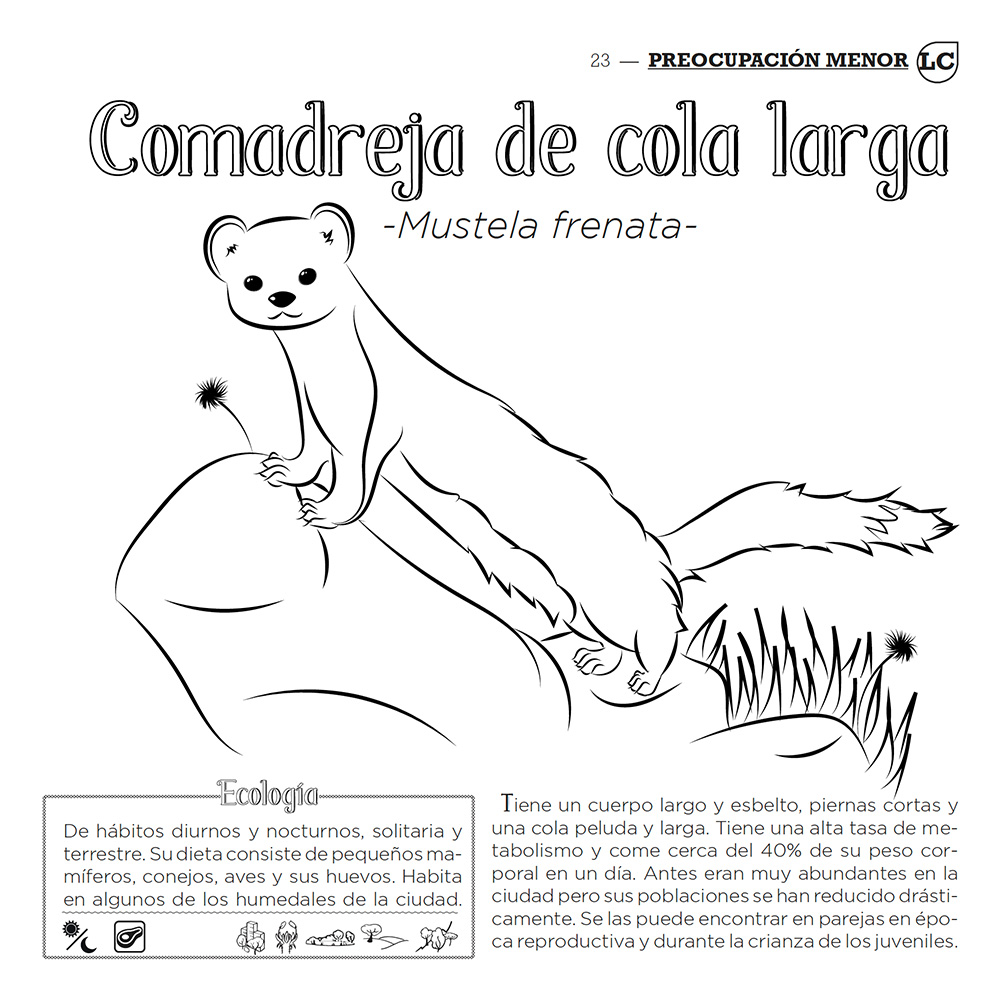 It is not only a guide showing some of the mammals recorded in Bogotá that have the city as their habitat. It is also a document that brings the imagination to the test when coloring them. A good combination providing information, creating conscience on the importance of local fauna and offering some fun.