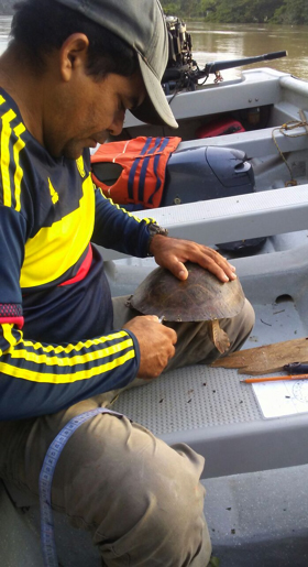 Recientemente, y como parte de las actividades programadas bajo ese proyecto, se hizo la marca-recaptura de individuos de Podocnemis lewyana. Esta tarea, realizada por tercer año consecutivo, sirvió para monitorear las poblaciones de esta especie y recopilar datos morfométricos (medidas) de los individuos. En total, hubo 111 capturas y 30 recapturas. Luego de culminar la respectiva toma de datos, esos 141 ejemplares fueron liberados en los mismos lugares donde previamente habían sido capturados.