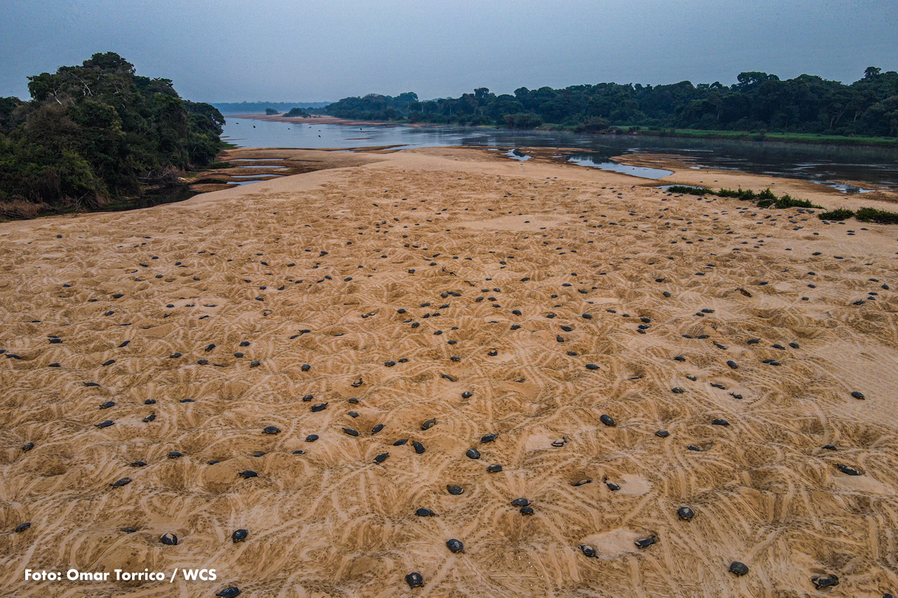 Un estudio innovador realizado por Wildlife Conservation Society (WCS) y la Universidad de Florida confirmó la mayor concentración conocida de tortugas de agua dulce en el planeta. Utilizando drones y modelado estadístico avanzado, los investigadores contaron más de 41.000 tortugas gigantes del río Amazonas (Podocnemis expansa) durante 12 días de temporada de anidación a lo largo del río Guaporé, también conocido como río Iténez, en la Amazonía.